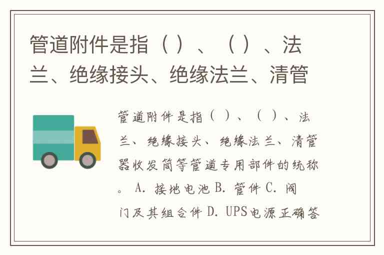 管道附件是指( )、( )、法兰、绝缘接头、绝缘法兰、清管器收发筒等管道专用部件的统称。 A. 接地电池 B. 管件 C. 阀门及其组合件 D. UPS电源