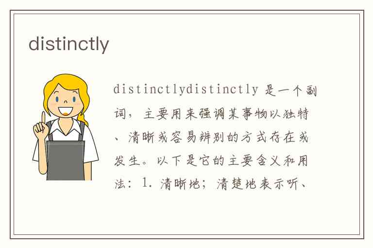 distinctly 是一个副词,主要用来强调某事物以独特、清晰或容易辨别的方式存在或发生。