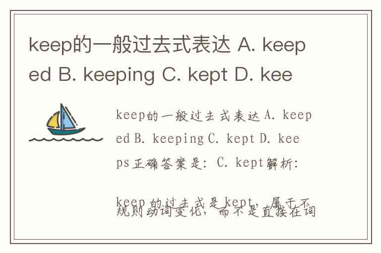 keep的一般过去式表达 A. keeped B. keeping C. kept D. keeps