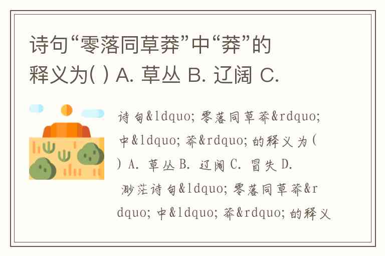 诗句“零落同草莽”中“莽”的释义为( ) A. 草丛 B. 辽阔 C. 冒失 D. 渺茫