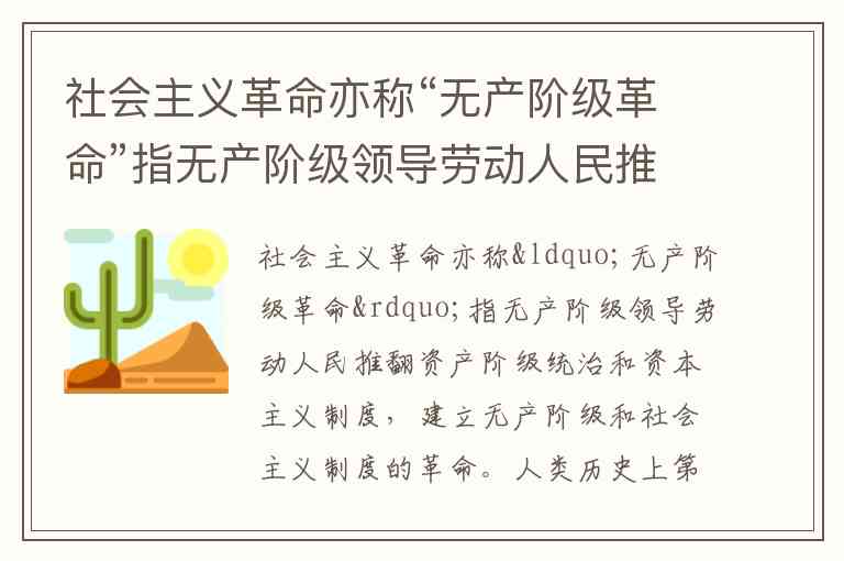 十月革命(1917年11月,俄历10月)由列宁和布尔什维克党领导,推翻了资产阶级临时政府,建立了世界上第一个社会主义国家——苏维埃俄国,标志着社会主义革命的首次胜利。