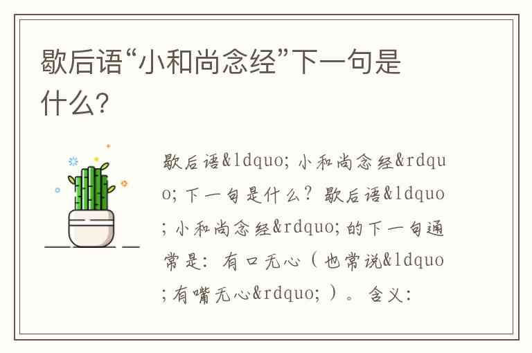 歇后语“小和尚念经”的下一句通常是:有口无心(也常说“有嘴无心”)。