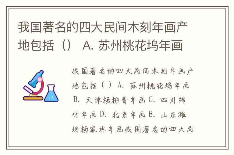 我国著名的四大民间木刻年画产地包括() A. 苏州桃花坞年画 B. 天津杨柳青年画 C. 四川绵竹年画 D. 北京年画 E. 山东潍坊杨家埠年画