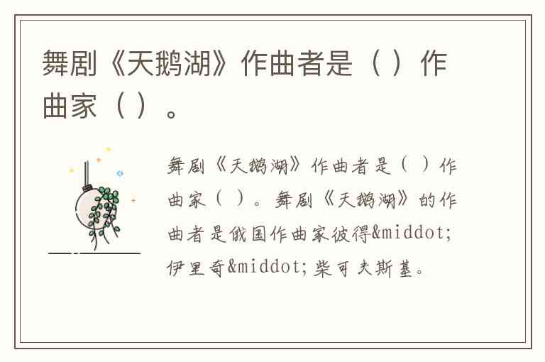 舞剧《天鹅湖》作曲者是( )作曲家( )。