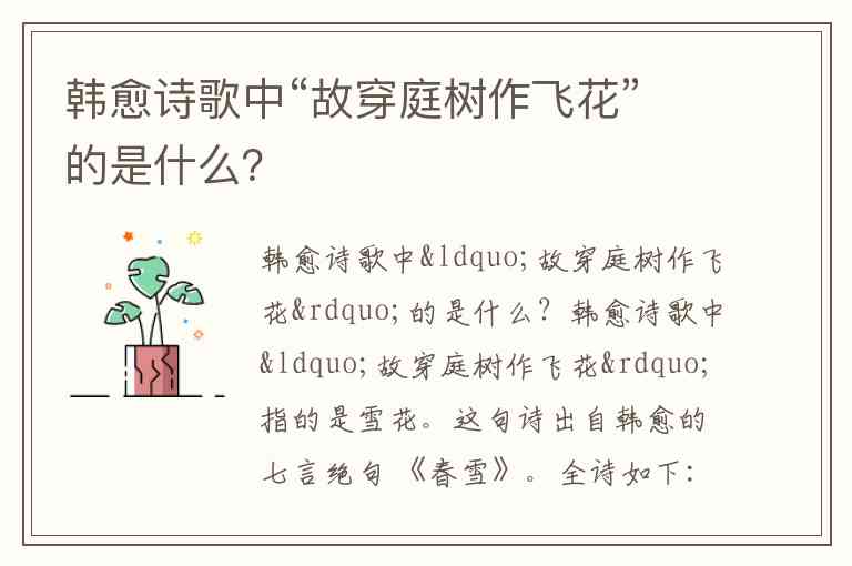 韩愈诗歌中“故穿庭树作飞花”的是什么?