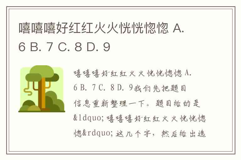 我们先把题目信息重新整理一下。题目给的是“嘻嘻嘻好红红火火恍恍惚惚”这几个字,然后给出选项:A.6、B.7、C.8、D.9。