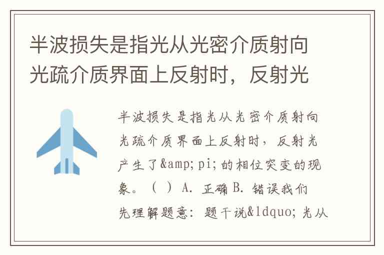 我们先理解题意:题干说“光从光密介质射向光疏介质界面上反射时,反射光产生了π的相位突变”这种现象叫做半波损失。