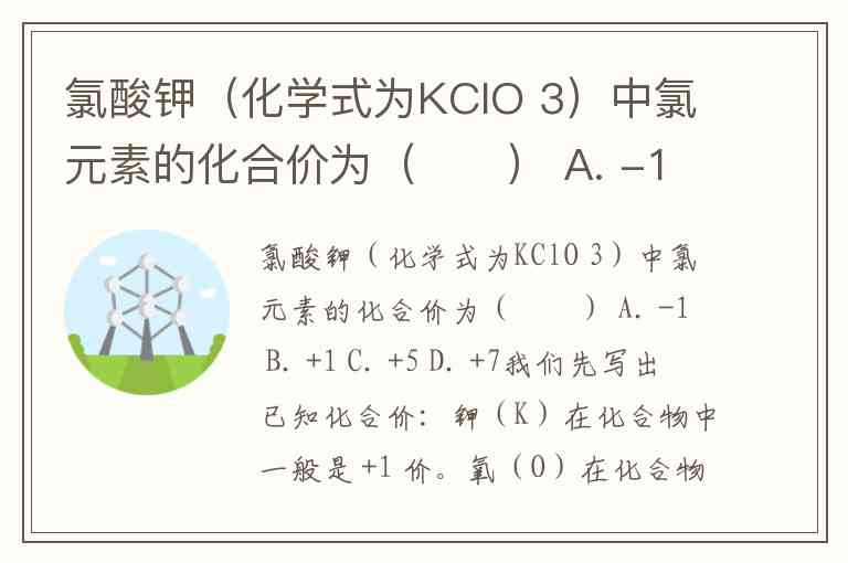 化学式:KClO3 \text{KClO}_3KClO3根据化合物中元素化合价代数和为零,有: