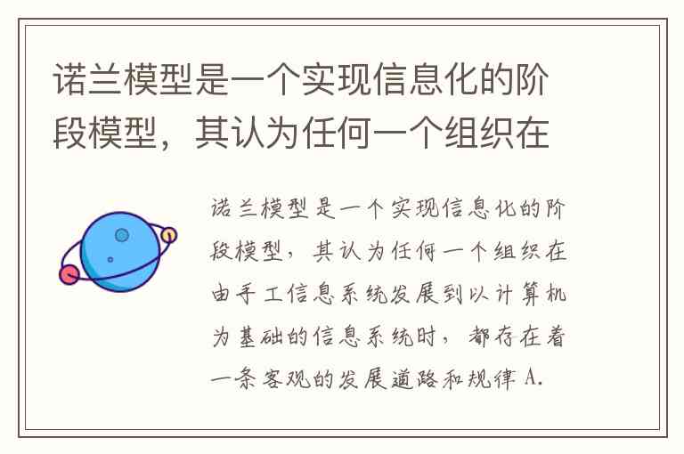 诺兰(Nolan)在 1970 年代提出诺兰阶段模型,认为信息系统发展存在六阶段(后来扩充),包括初始、扩展、控制、集成、数据管理、成熟等,反映了信息系统发展的客观规律。