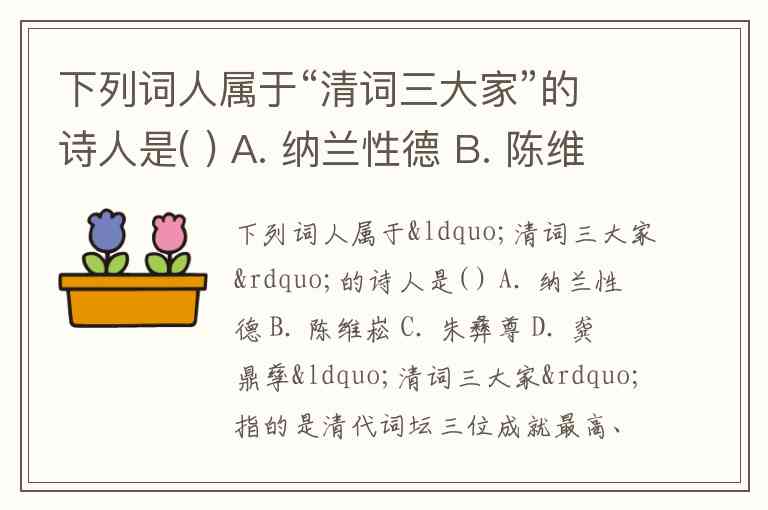“清词三大家”指的是清代词坛三位成就最高、影响最大的词人,他们的作品分别代表了清词的不同风格流派。