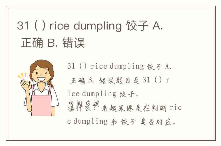 题目是 31 ( ) rice dumpling 饺子,中间应该填什么?看起来像是在判断 rice dumpling 和 饺子 是否对应。