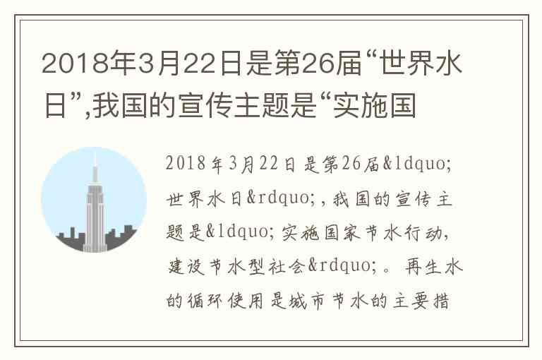 2018年3月22日是第26届“世界水日”,我国的宣传主题是“实施国家节水行动,建设节水型社会”。再生水的循环使用是城市节水的主要措施之一,“再生水”是城市污水经处理后达到国家水质标准的中水(中水是指介于自来水和污水之间的水)。下列有关水的说法错误的是( ) A. “再生水”用于农业灌溉有利于节约水资源 B. 过滤不能将硬水转化为软水 C. “再生水”可能是纯净物 D. 节约用水是每位公民的责任