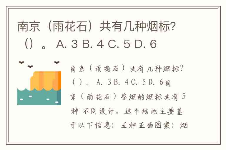 南京(雨花石)共有几种烟标?()。 A. 3 B. 4 C. 5 D. 6