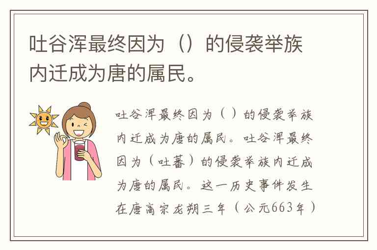 吐谷浑最终因为()的侵袭举族内迁成为唐的属民。