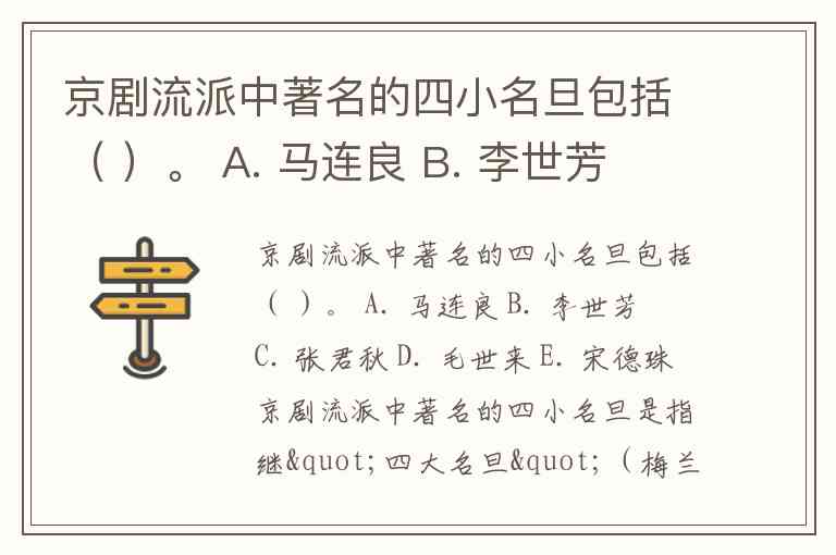 京剧流派中著名的四小名旦是指继"四大名旦"(梅兰芳、程砚秋、尚小云、荀慧生)之后,于20世纪30年代备受观众推崇的四位优秀的旦角演员。