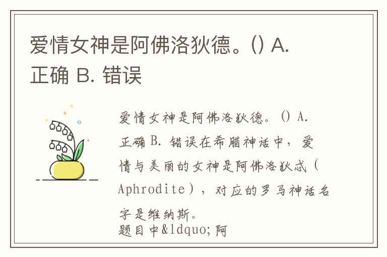 爱情女神是阿佛洛狄德。() A. 正确 B. 错误