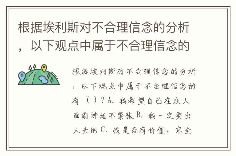 根据埃利斯对不合理信念的分析,以下观点中属于不合理信念的有 ()? A. 我希望自己在众人面前讲话不紧张 B. 我一定要出人头地 C. 我是否有价值,完全在于我人生中的每个环节和方面都能有所成就 D. 到目前为止,我的工作成绩暂时不如别人 E. 如果我这次考试考不好,将来就找不到好工作