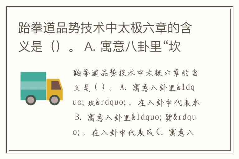 跆拳道品势技术中太极六章的含义是 A. 寓意八卦里“坎”。在八卦中代表水。