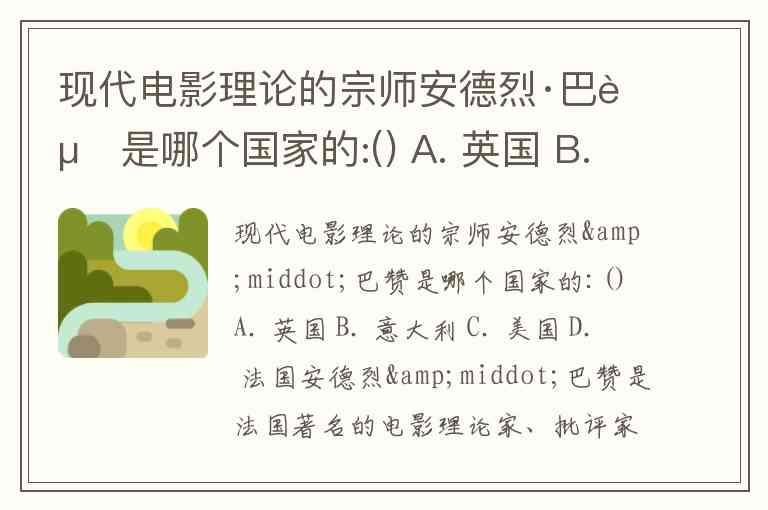 现代电影理论的宗师安德烈·巴赞是哪个国家的:() A. 英国 B. 意大利 C. 美国 D. 法国
