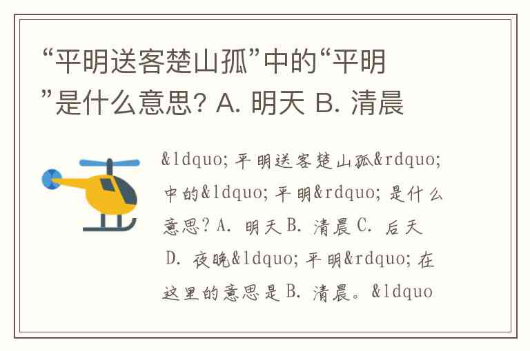 “平明送客楚山孤”中的“平明”是什么意思? A. 明天 B. 清晨 C. 后天 D. 夜晚