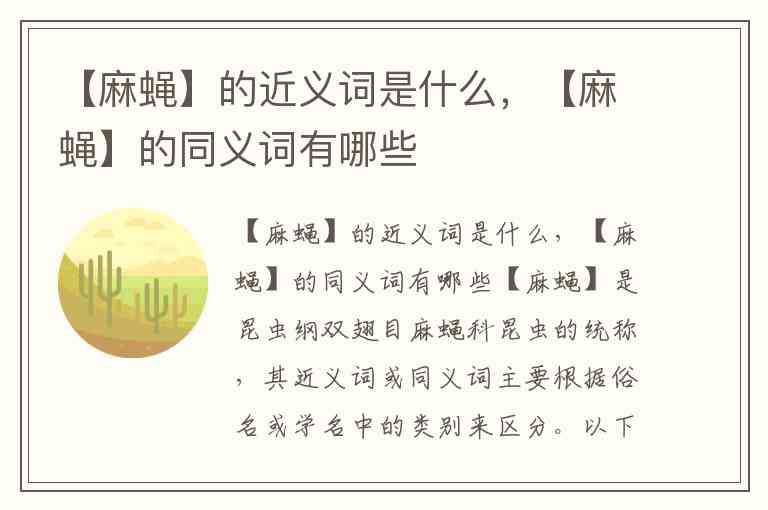 【麻蝇】是昆虫纲双翅目麻蝇科昆虫的统称,其近义词或同义词主要根据俗名或学名中的类别来区分。以下是常见的对应词汇: