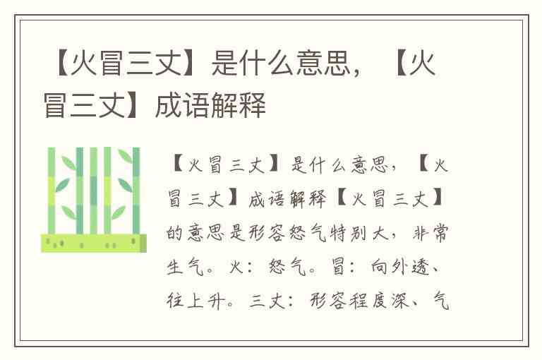 【火冒三丈】是什么意思,【火冒三丈】成语解释