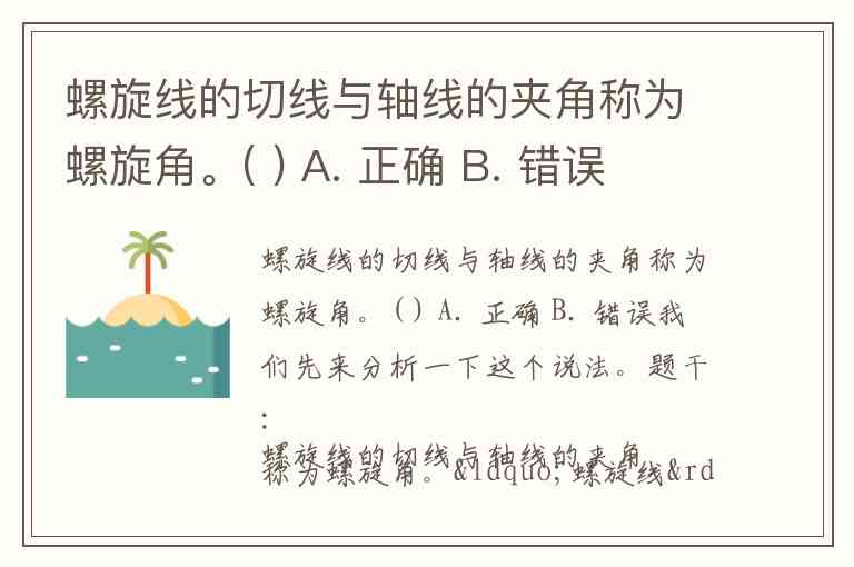 不过如果题中暗示的是机械里的螺纹螺旋角(切线与端面夹角),那就错误。但题目没有特别说明,默认按字面定义理解,应判断为正确。
