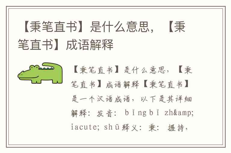 整个成语的意思是:拿起笔来,如实记载,毫不隐讳。 指写史、写作或记录事情时,坚持原则,公正客观地反映事实原貌,不因为个人好恶、权势压迫或利益诱惑而有所隐瞒、歪曲或夸大。
