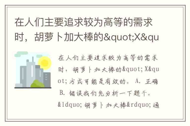 在人们主要追求较为高等的需求时,胡萝卜加大棒的"X"方式可能是有效的。 A. 正确 B. 错误