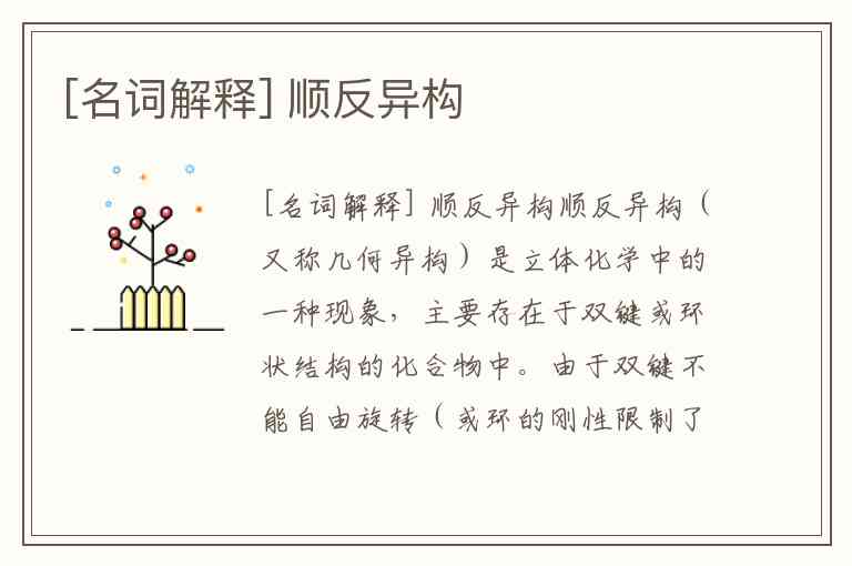 顺反异构(又称几何异构)是立体化学中的一种现象,主要存在于双键或环状结构的化合物中。