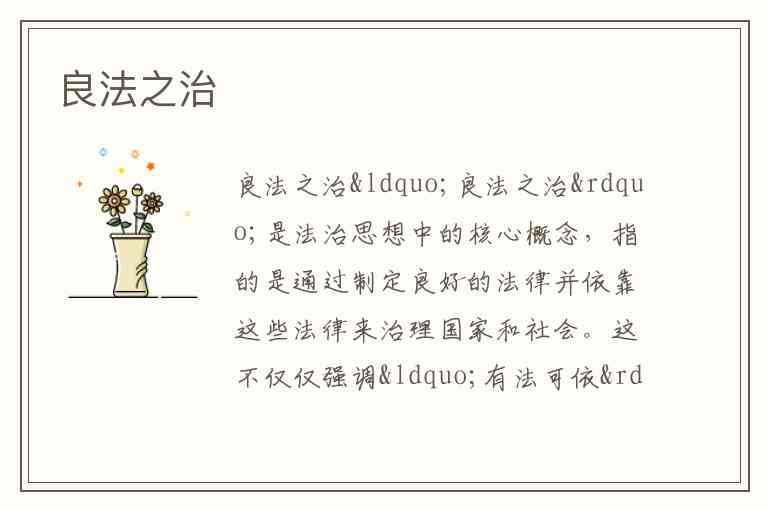 “良法之治”是法治思想中的核心概念,指的是通过制定良好的法律并依靠这些法律来治理国家和社会。这不仅仅强调“有法可依”,更强调“法”本身必须是良善的。