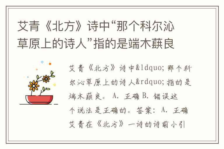 艾青《北方》诗中“那个科尔沁草原上的诗人”指的是端木蕻良。 A. 正确 B. 错误