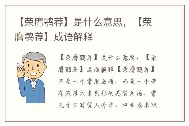 【荣膺鹗荐】不是一个常用成语,而是一个带有浓厚文言色彩的恭贺用语,常见于旧时贺人升学、中举或求职成功的庆贺语境中。