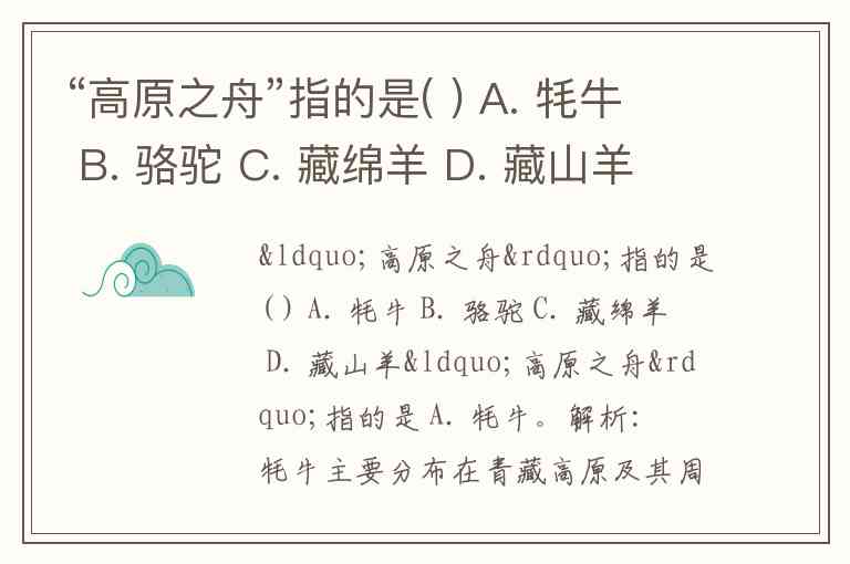 “高原之舟”指的是 A. 牦牛。