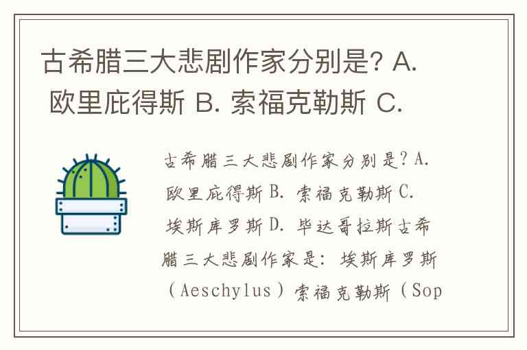 古希腊三大悲剧作家分别是? A. 欧里庇得斯 B. 索福克勒斯 C. 埃斯库罗斯 D. 毕达哥拉斯