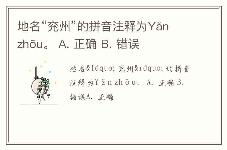 地名“兖州”的拼音注释为Yǎn zhōu。 A. 正确 B. 错误
