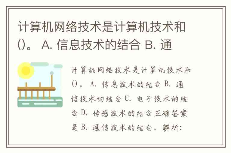 计算机网络技术是计算机技术和()。 A. 信息技术的结合 B. 通信技术的结合 C. 电子技术的结合 D. 传感技术的结合