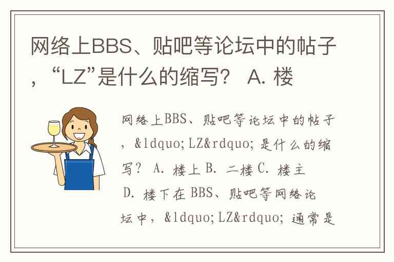 网络上BBS、贴吧等论坛中的帖子,“LZ”是什么的缩写? A. 楼上 B. 二楼 C. 楼主 D. 楼下