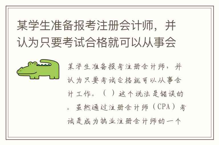 某学生准备报考注册会计师,并认为只要考试合格就可以从事会计工作。( )