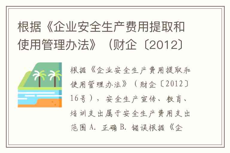 根据《企业安全生产费用提取和使用管理办法》(财企〔2012〕16号),安全生产宣传、教育、培训支出属于安全生产费用支出范围 A. 正确 B. 错误