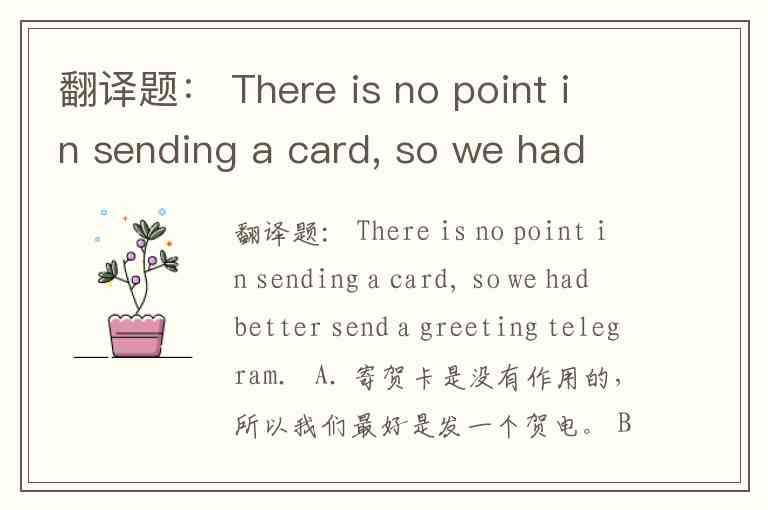 翻译题: There is no point in sending a card, so we had better send a greeting telegram. A. 寄贺卡是没有作用的,所以