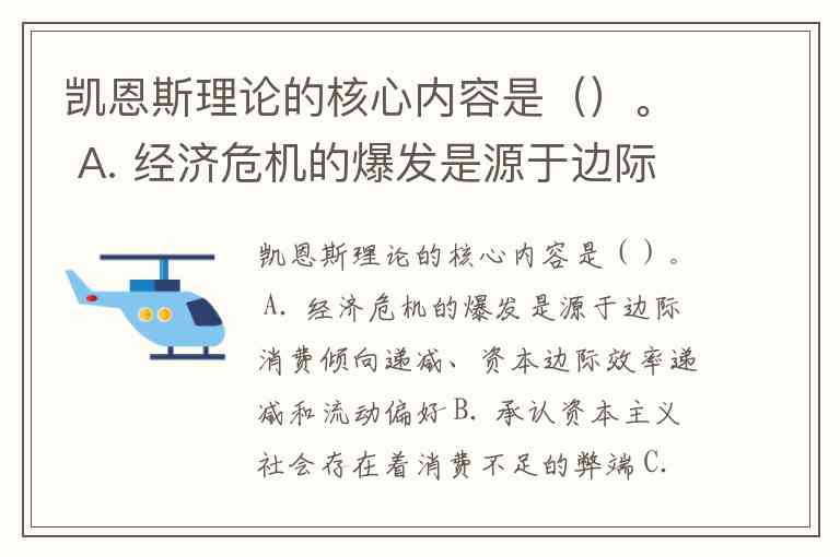内容:经济危机的爆发是源于边际消费倾向递减、资本边际效率递减和流动偏好。