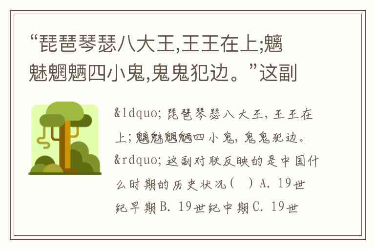 “琵琶琴瑟八大王,王王在上;魑魅魍魉四小鬼,鬼鬼犯边。”这副对联反映的是中国什么时期的历史状况( ) A. 19世纪早期 B. 19世纪中期 C. 19世纪末 D. 20世纪早期