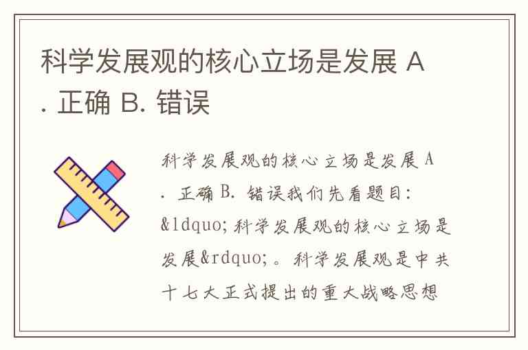 科学发展观的核心立场是发展 A. 正确 B. 错误