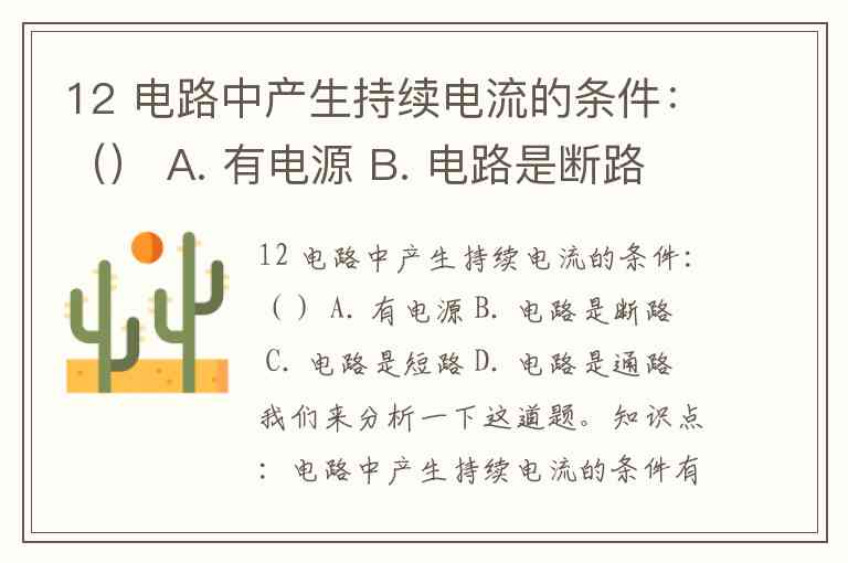 不过有些教材里这道题的答案是 D. 电路是通路,因为如果给了电源但电路不通,也不会有持续电流,所以“持续电流”需要在电源存在的前提下同时保证电路是通路。