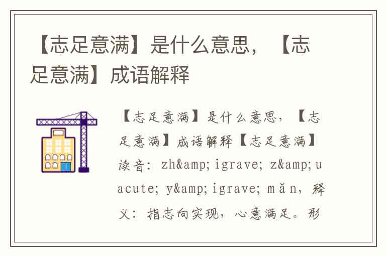 【志足意满】读音:zhì zú yì mǎn,释义:指志向实现,心意满足。形容得意自满的样子。出处:明·冯梦龙《喻世明言》卷三十八:“那梁家和邻舍们初时也还惊怕,到后来见任珪志足意满,日日这般,便不以为意。”