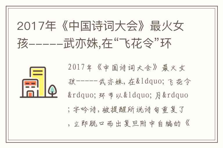 武亦姝在《中国诗词大会》表现出色,反应迅速,心态稳定。