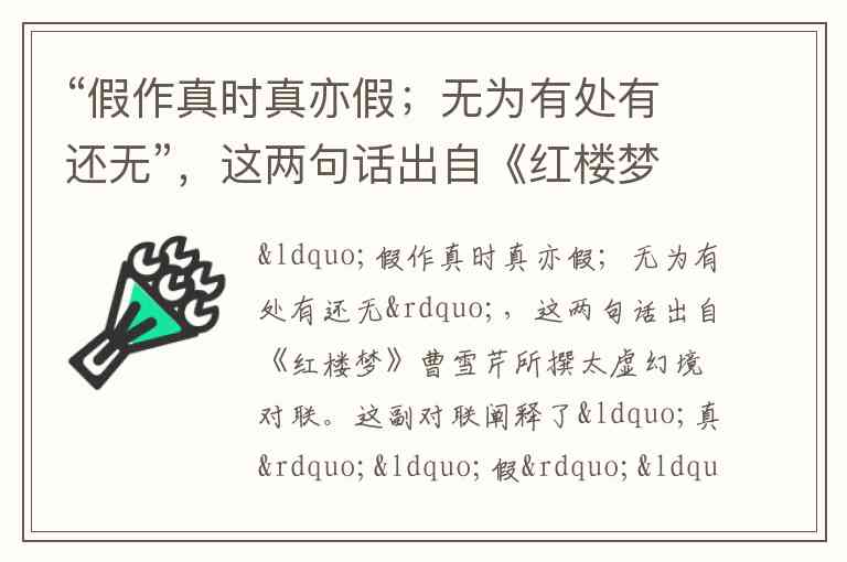 我们先看题干引用的对联“假作真时真亦假;无为有处有还无”出自《红楼梦》,主要是讲真假、有无的相对性和相互转化。它强调的是两者相互依存、相互渗透,在一定条件下可以互相转化。