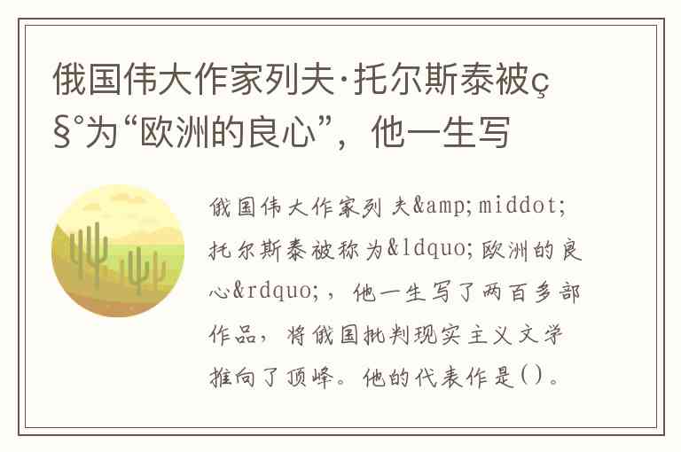 列夫·托尔斯泰是俄国批判现实主义文学的代表作家,其代表作包括《战争与和平》《安娜·卡列尼娜》《复活》等。