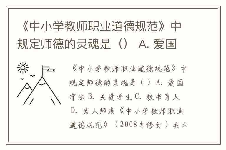 《中小学教师职业道德规范》中规定师德的灵魂是() A. 爱国守法 B. 关爱学生 C. 教书育人 D. 为人师表